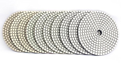 - SET OF 8- Wet diamond polishing pads: 1 piece each for grit 50, 100, 200, 400, 800, 1500, 3000 and Buffer Pad