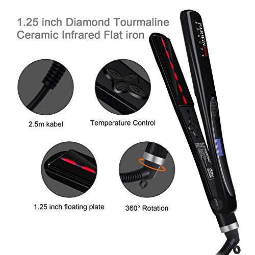 PARWIN BEAUTY Advanced Infrared Straightener-Heat Technology Diamond Tourmaline Ceramic Dual Voltage Travel Flat Iron Worthy Shine with...