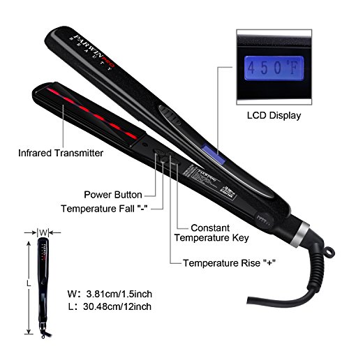 Zero interval floating heating panel & exact temperature LCD display: The straightener use our PARWIN BEAUTY exclusive ZERO INTERVAL floating heating panel to make sure your hairs easy styling durable. The LCD display can let you control the heating temperatures visibly.