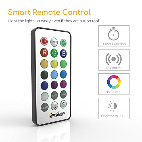 - HANDY REMOTE: Amazing 21 buttons; up to 13 colors options; Fade Mode (auto-switch among 13 colors slowly); Jump Mode (auto-switch among 13 colors rapidly); Timer Mode (8 hours on and 16 hours off).