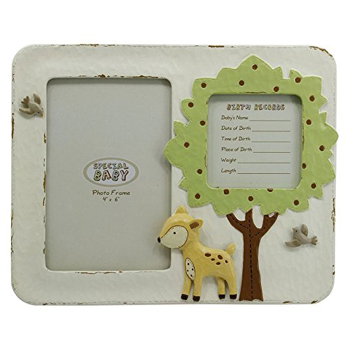 - Rectangle baby deer two openings photo frame-left opening for 4(L) by 6(H) inch baby photograph right one for birth record.