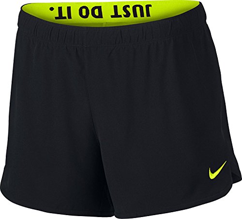 -. Binding : Apparel -. Brand : -. Color : Black -. Department : womens -. Feature : Dri-FIT fabric technology wicks moisture to help keep you dry and comfortable / Built-in compression shorts offer support / Taffeta with an Everquick finish for quick-drying performance & flat seams move smoothly against your skin / Elastic waist with an internal draw cord for a snug and adjustable fit / Stretchy fabric for great range of motion -. IsAdultProduct : 0 -. ProductGroup : Apparel -. ProductTypeName : SHORTS -. Title : Women's Dri-Fit 2-in-1 Phantom Training Shorts - Black & Volt Yellow