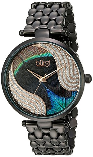 -. Title : Burgi Women's Genuine Swarovski Crystal Peacock Feather Pattern Dial With Black Case on Black Stainless Steel Bracelet Watch BUR162BK