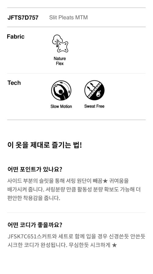 사이드 부분의 트임에 셔링을 배색하여 충분한 활동성을 느낄 수 있는 맨투맨 티셔츠입니다.