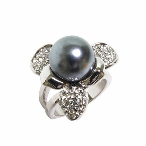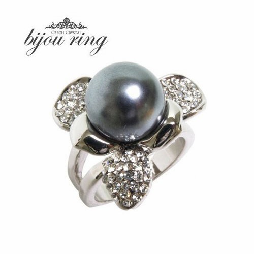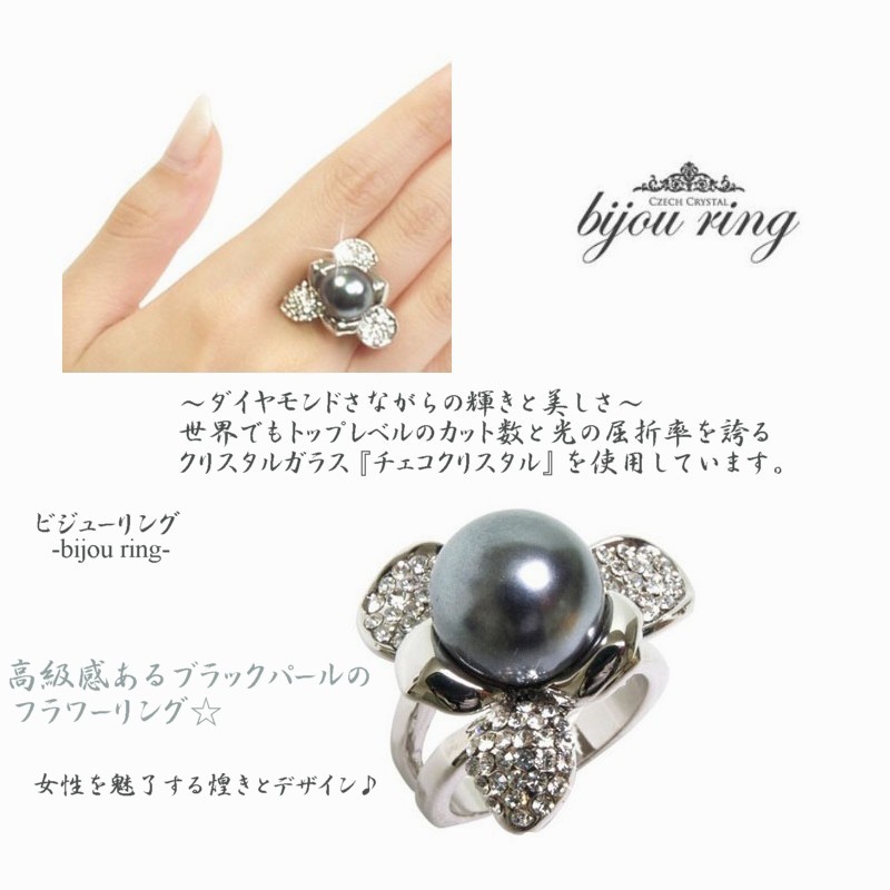 ★高級感あるブラックパールのフラワーリング♪