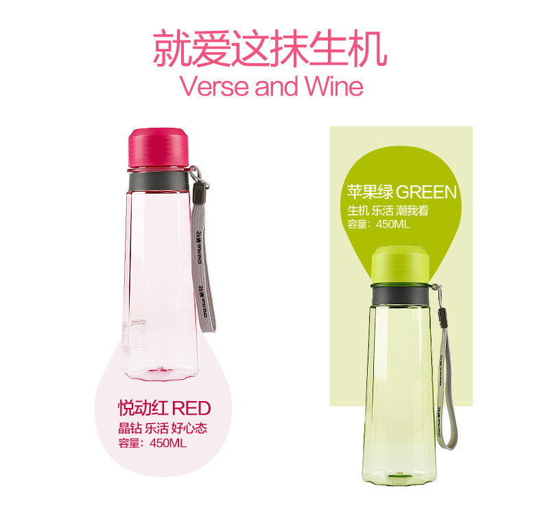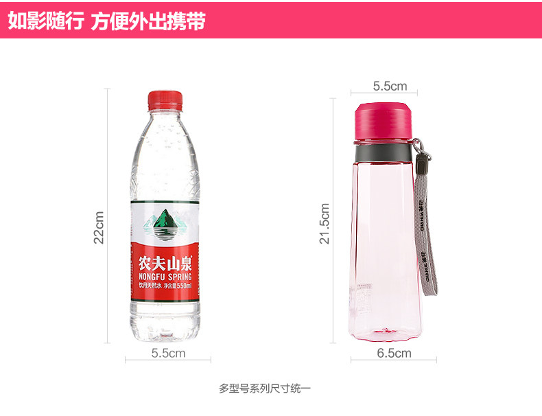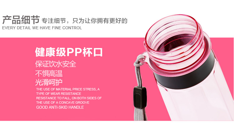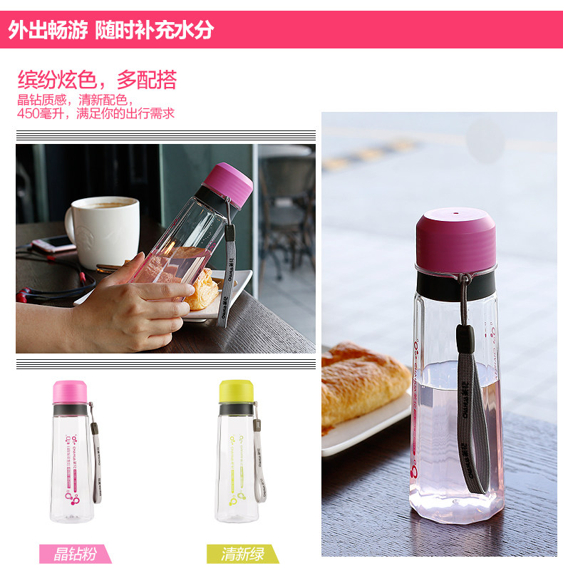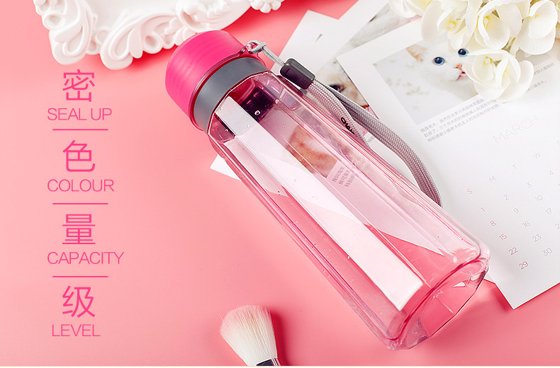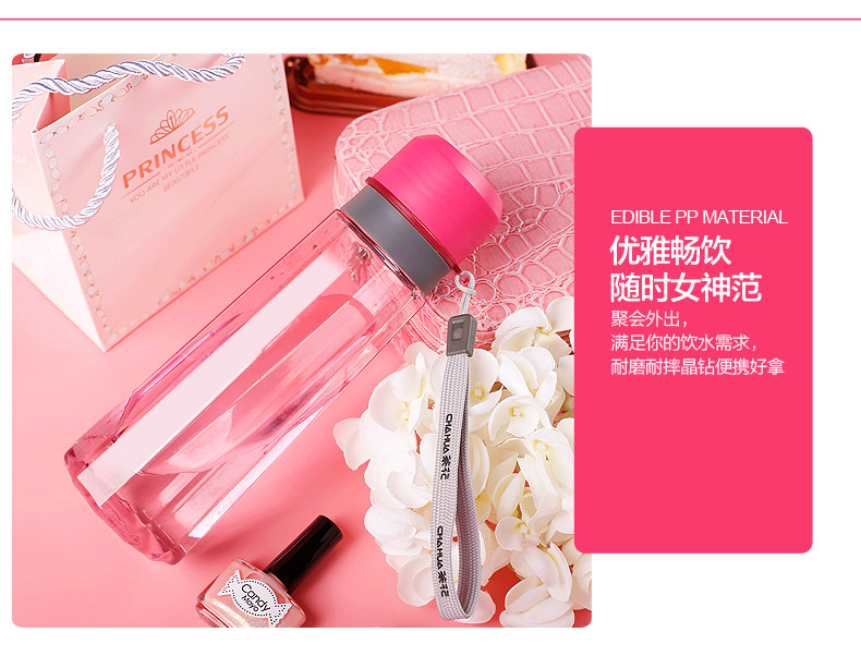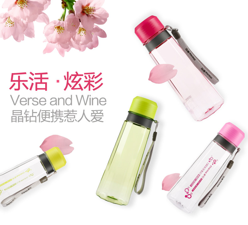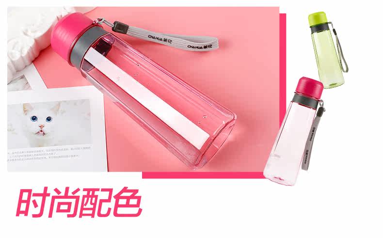 茶花水杯便携防漏大容量学生塑料运动水杯水壶旅行杯可爱创意杯子