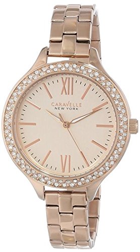 -. Binding : Watch -. Brand : Bulova -. Color : Rose/Rose Gold -. Department : womens -. EAN : 0042429507784 -. Feature : Round watch in rose gold-tone stainless steel with crystal-set bezel and Roman numeral and notch hour markers / Japanese quartz movement with analog display / Mineral crystal dial window / Jewelry-clasp closure / Water resistant to 99 feet (30 M): withstands rain and splashes of water, but not showering or submersion / Quartz movement / Mineral flat crystal / Rose gold dial / Stainless steel case and bracelet / Water resistant to 99 feet (30 M): withstands rain and splashes of water, but not showering or submersion -. Label : Caravelle New York -. Manufacturer : Caravelle New York -. Model : 44L125 -. MPN : 44L125 -. PackageQuantity : 1 -. PartNumber : 44L125 -. ProductGroup : Watch -. ProductTypeName : WATCH -. Publisher : Caravelle New York -. ReleaseDate : 2013-12-17 -. Size : Standard -. Studio : Caravelle New York -. Title : Caravelle New York Women's 44L125 Analog Display Japanese Quartz Rose Gold-Tone Watch -. UPC : 042429507784
