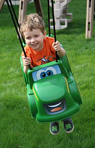 Your infants first swing will also be their favorite as toddler. Get your little one enjoying the outside early in the this sturdy and safe push swing that includes and a full bucket seat, t-bar with large leg opening and adjustable waist strap for a safety belt. 50 lb. capacity. Constructed of ABS plastic known resistance and toughness. Weather resistant rope. Fully assembled and ready for your garden, playground, swingset or tree.