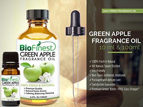 BioFinest Green Apple Fragrance Oil - 100% Pure & Natural - Fresh Home Scent - Air Refresher - Relaxing Aromatherapy - Skin and Hair Care - FREE E-Book (10ml)