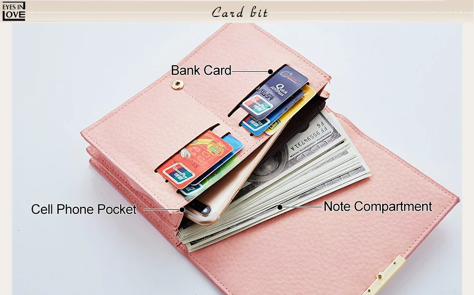 Interior:Cell Phone Pocket,Interior Compartment,Coin Pocket,Card Holder,Photo Holder,Note Compartment