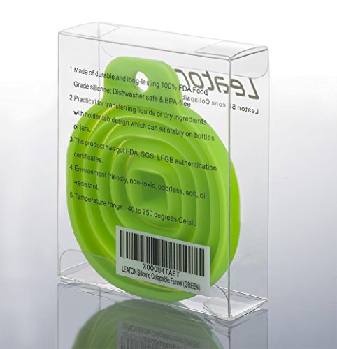 Leaton Silicone Collapsible Funnel Foldable Funnel for Liquid Transfer 100% Food Grade Silicone (Green)
