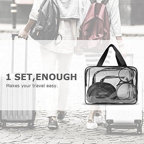 6 Pack Toiletry Bag,YORONIDA Clear Travel Cosmetic Case Portable Makeup Bag Set Carry On Transparent PVC Pouch Handbag Storage Organizer Kit with Handle Strap for Women Men Trip Accessories,Black