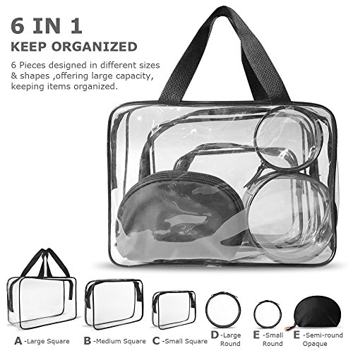 - 5 CLEAR Bags to see and get items quickly, as well as 1 OPAQUE Bag to protect private items.Suitable for all ages,women,man,girls or boys.