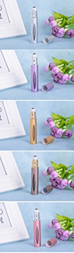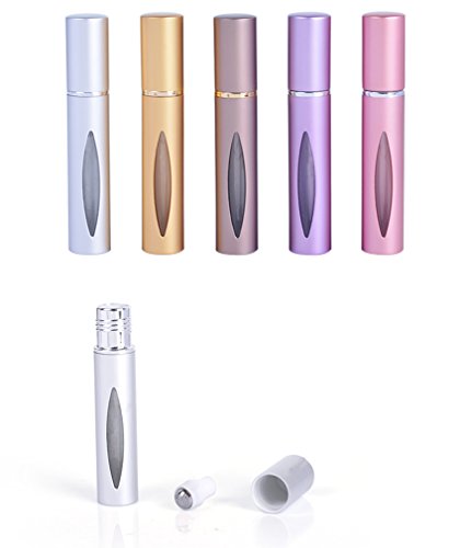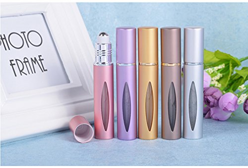 Le Fu Li 5 Bottles 10ml Roller Ball Bottles Made of Aluminum and Glass with Stainless Steel Ball for Essential Oils, Perfume Essential Oils Opener,Perfume funnel