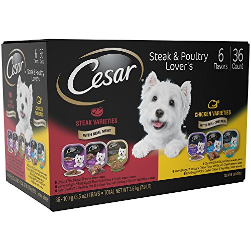 -. Title : CESAR Steak and Chicken Lover's Adult Wet Dog Food Variety Pack Trays 3.5 Ounces (Pack of 36)