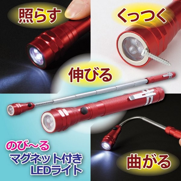 【商品名】のびーるマグネット付きLEDライト 伸縮式(長さ17~55cm) /電池式