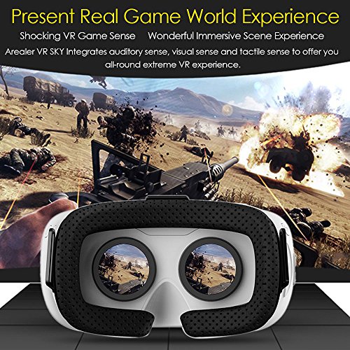 -. Feature : 【1080P FHD High-definition Screen】 Arealer VR SKY is equipped with 5.5inch TFT-LCD display screen which supports resolution up to 1920*1080 and Refresh Rate at 70Hz(Much higher FPS than average performance), offering more high-definition & fluent frame with low afterglow and can protect user's eyes better with much less harmful blue ray energy. / 【Fully-immersive Virtual Reality Helmet】 360° three-dimensional space (without dead corner) interactive system delivers more authentic immersive Virtual Reality experience. And embedded with nine-axle sensors which supports 360° view of head tracking (360° head somatic sensory control), making you feel that you are on the scene. Furthermore, it provides 2D, 3D and 360° panorama format to be chosen. / 【Abundant Game Resources & Movie Resources】 The Team offers you more than 100 Virtual Reality Games (The VR Games are being updated) and a plenty of 3D Movies. No need for Smartphone & PC, you can Enjoy 1080p HD Movie / 3D Movie (offering clear and exquisite 3D picture) / Wonderful Immersive Games. Just enjoy wonderful VR Games and Movie Resources. / 【High-end Lens & & Large FOV】 Arealer VR SKY uses Anti-blue rays double 45mm Aspheric high transparency (PMMA)Lenses which is more pure and offers distortionless image. Arealer VR SKY owns optimal 100° FOV (super similar to human eyes, giving you a broad perspective) and ultra-low levels of light leak, can achieve the latency time within ultra-short time. The VR Headset supports adjusting pupil distance and is compatible with naked eyes with myopia under 600 degrees. / 【Immersive Game Experience】 Arealer VR SKY also supports surround output, can enhance your Immersive Sense and make you feel like on the scene when experiencing VR games. And nine-axle attitude indicator are embedded to let the player totally immerse in the world of games through the player¡¯s actual rotation of head. You are note separated from games but being a part of them.