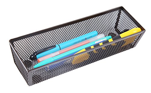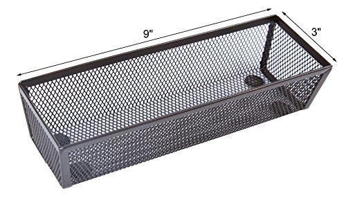Powder-coated steel mesh bins can organize kitchen utensils and gadgets, stationery, craft supplies, keys, batteries, small tools, mail, stamps and more