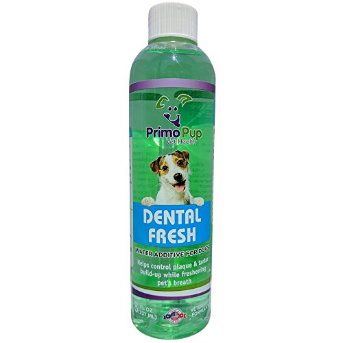 -. Title : P.R.Imo Pup Vet Health - Dental Fresh Water Additive, All Dog Formula with Natural Peppermint Oil - Reduces Plaque and Tartar Build-up, Freshens Breath, Reduces Bad Bacteria in Mouth - 8 fl oz