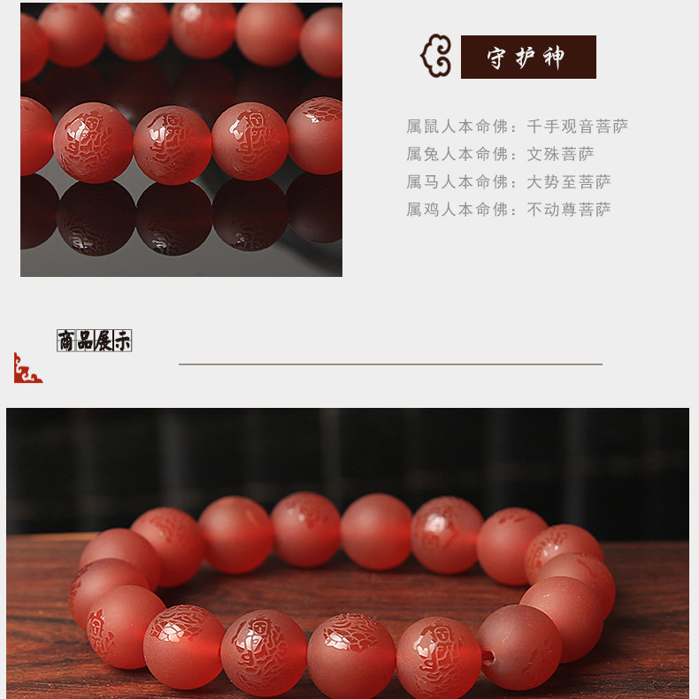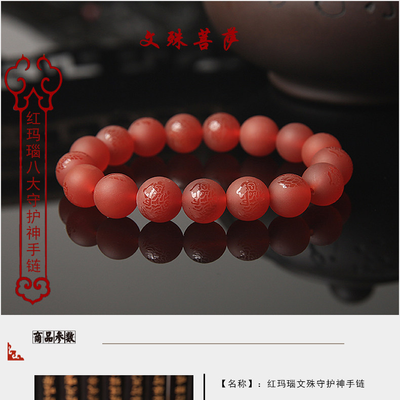 开光十二生肖兔本命佛文殊菩萨红玛瑙手串男女手链