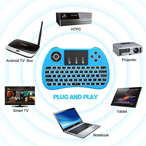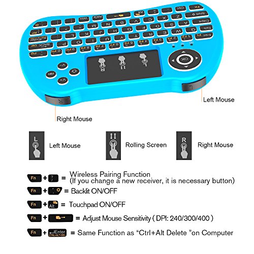 Aerb Backlit 2.4GHz Wireless Mini Keyboard H9 Pro, Mouse Toupad Combo, Portable Multi-media Remote Control for Android TV Box, HTPC, IPTV, PC, Pad and More - Blue(Pure White Backlight)