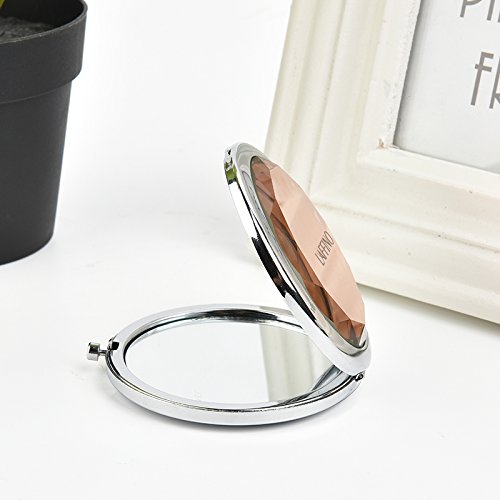 - Package - Includes set of 2 brushes in pink & purple.Bonus item a beautiful, elegantly designed travel make up mirror as a gift.Ideal for purse,handbags for that last minute touch up.I side normal,1 side 10x magnification