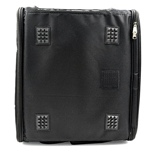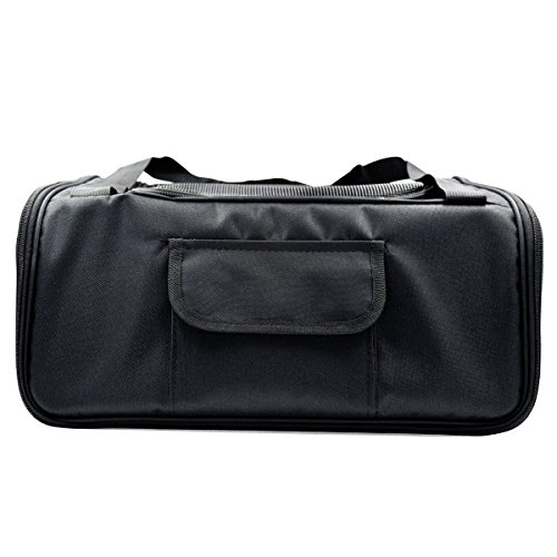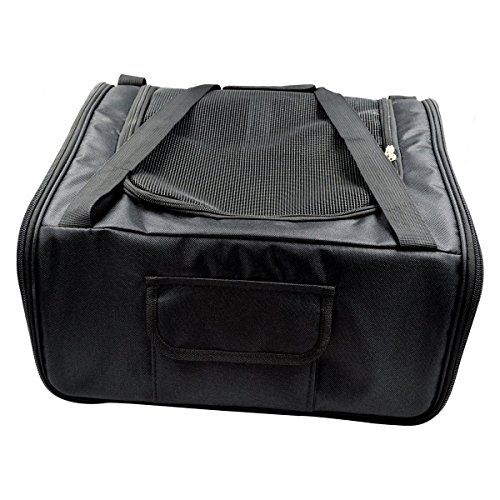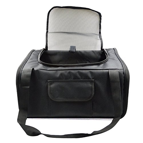 -. Feature : Multi-function pet bag, can be portable or put on car with shoulder strap / Made of Durable and Breathable Materials Oxford cloth,Easy to fold and carry / This carrier is 16.5"Lx14"W x10"H,Suitable for small dogs, cats, puppies and many other house pets weighing up to 17 lbs / Stylish and functional pet carrier with two outer side nylon mesh pockets,can put some dog toys. / Inside safety and comfortable lead prevents the pet jumping out.