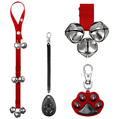 Including: Dog potty doorbell *1 Training clickers *1 LED dog tag *1 Instruction of Housetraining Your Dog Using a Bell*1 Instruction of How to Clicker Train Your Dog*1. 0