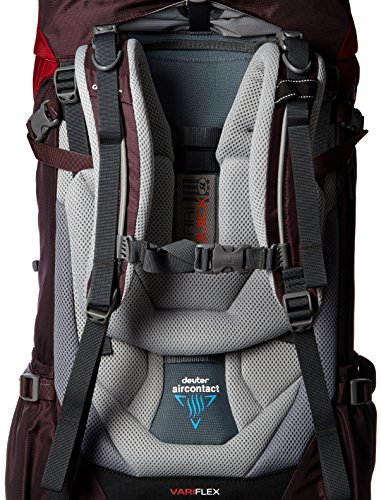 Studio : Deuter Publisher : Deuter Binding : Misc. Product Description This series carries the biggest loads of all the Deuter trekking packs, has all the features, offers a comfortable suspension system, and sports durable fabrics and construction to put up with major trail-abuse. - Energy saving comfort due to the anatomically shaped and pivoting Vari Flex hip fins, which follow your every move (precise load control due to compression straps on hip fins) - Pull-Forward hip belt buckle, easy to fasten even when heavily laden - Stable multi-chamber aluminium X-frame transfers load to the hip belt - Head moulding and positionable lid pocket with compression strap allow freedom of head movement - Three side compression straps - Hydration system compatible side bellows pockets - Hip belt zipped pocket - Lid pocket - Two daisy chains - Top lid attachment rings - Ice axe loop - Lower side pockets for tent poles - Double-layered base - Integrated detachable rain cover - Zipped map pockets at the front. 0