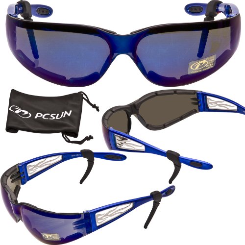 -. Title : Pacific Coast Sunglasses - Heat 4440 Motorcycle Goggles - Smoke Lenses Blue Mirror Coating- FREE Rubber EAR LOCKS