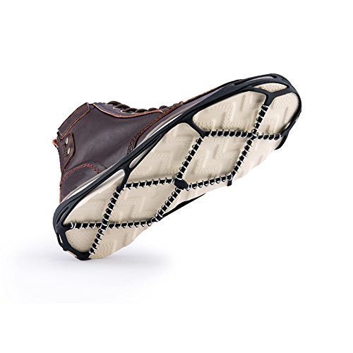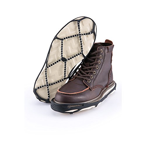 Simple and effective winter footwear traction device for instant confidence and safety in snowy or icy walking conditions.