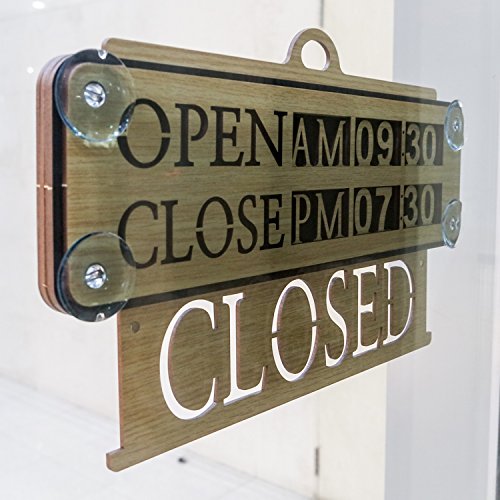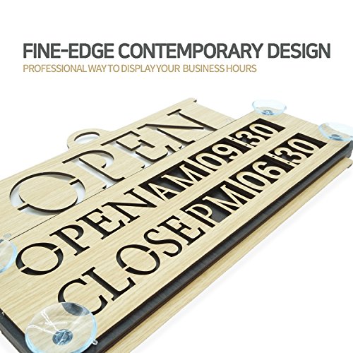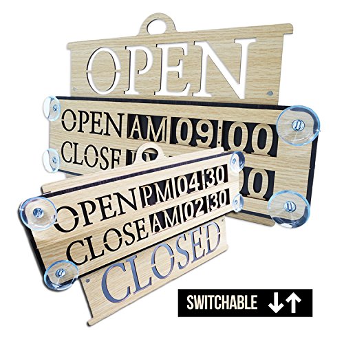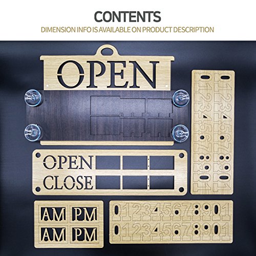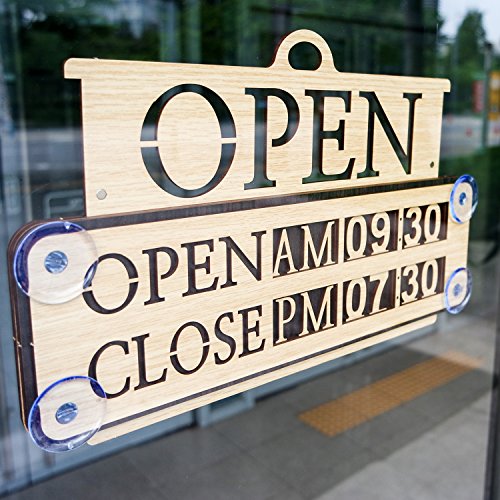 Business Hours Sign Replaceable Numbers Included Changeable Open Closed Board for Store Office Restaurant Cafe Wall Window Display with Strong Suction Cups 14" x 9" Durable Woodmade