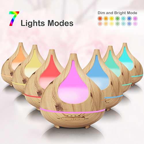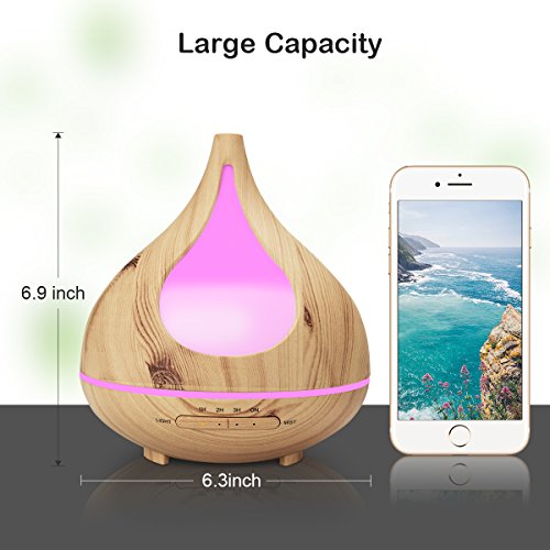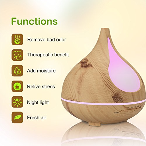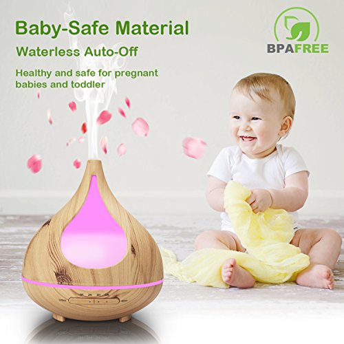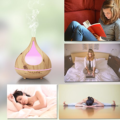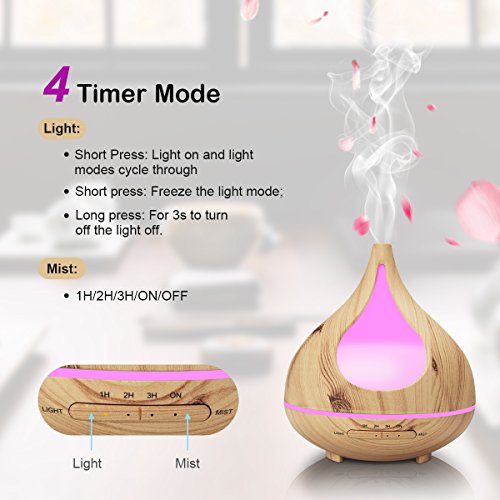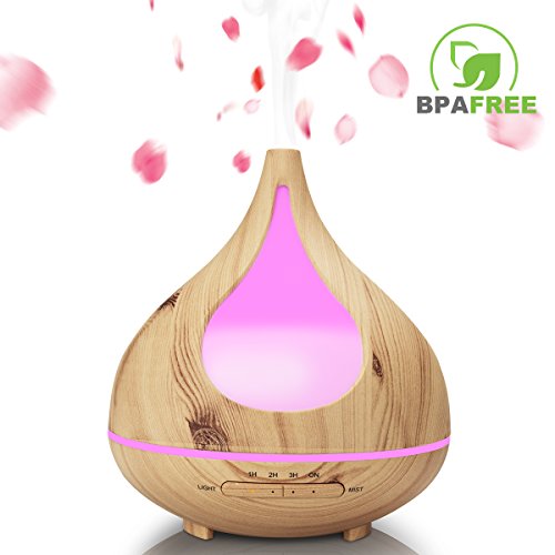 Wood Grain Essential Oil Diffuser, TEKITSFUN 300ml Ultrasonic Aroma Diffuser Cool Mist Humidifier with Waterless Shut Off, 4 Timer Mode, Adjustable Mist, Changing Lights for Bedroom Office Home