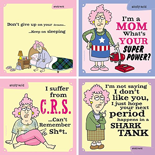Tree-Free Greetings Hilarious Aunty Acid Magnet 4 Piece Set, 3.5 x 3.5 Inches, Mom Magnets (FM31244)