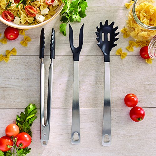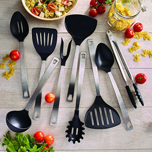 Studio : Amco Publisher : Amco Binding : Kitchen Product Description Along with popularity of non-stick cookware comes a need for these non-scratch utensils. Amco's Nylon and Stainless Steel Utensils were specifically created for use with non-stick cookware. Each utensil features a heavy-duty 18/8 stainless steel handle combined with nylon end rated for 400°F. The pasta fork has generously spaced teeth to really grab your pasta, and the large center hole not only allows your pasta water to drain, but can also be used to measure a serving of pasta. 0