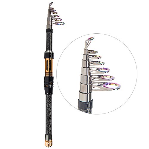 PORTABLE - The telescopic fishing rod is portable, and closed length design is convenient carrying around, easily fits in car trunk, boat hatch or backpack. You can travel to your favorite fishing spot for enjoyable fishing.