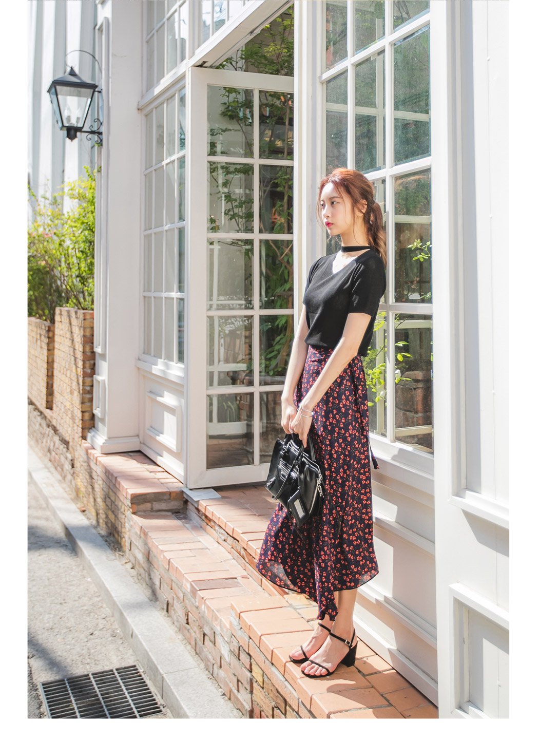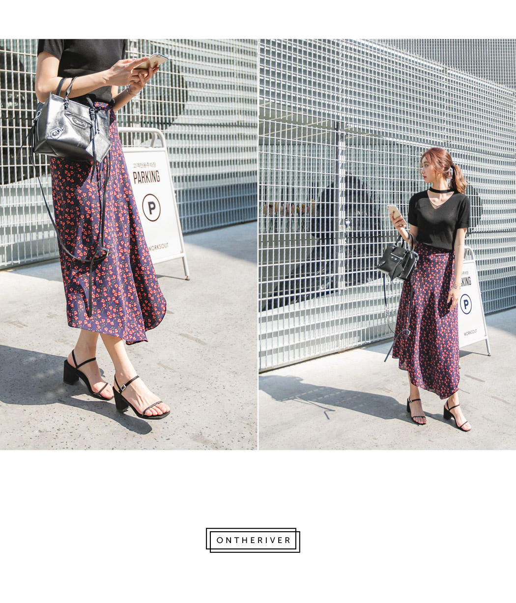 잔잔한 앵두 프린팅으로 러블리한 분위기를 연출할 수 있는 여리여리한 느낌의 랩스커트에요.
