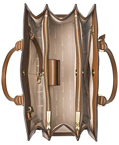 1 interior center magnetic snap tab compartment; 2 interior top zip compartments; 1 back snap compartment with 1 zip pocket & key clip inside; 1 front snap compartment with 1 slip pocket inside