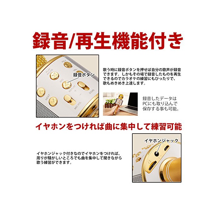 스마트 폰이나 타블렛이 있으면,어디에서라도 카라오케가 즐길 수 있는 스피커 부착 마이크!