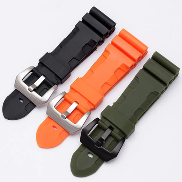 | [해외]Tjp 24 미리메터 26 미리메터 블랙 그레이 그린 orange 남성 블랙 방수 실리콘 고무 시계 줄 교체 파네 pam111 팔찌 스트랩 |