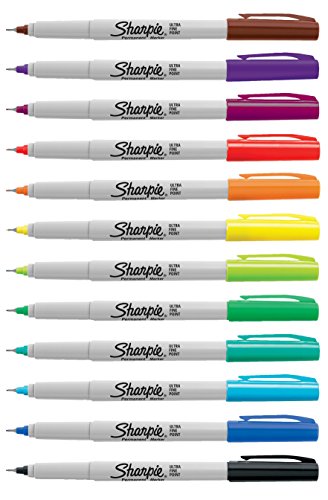 Sharpie Permanent Markers, Ultra-Fine Point, Assorted Colors, 12 Pack