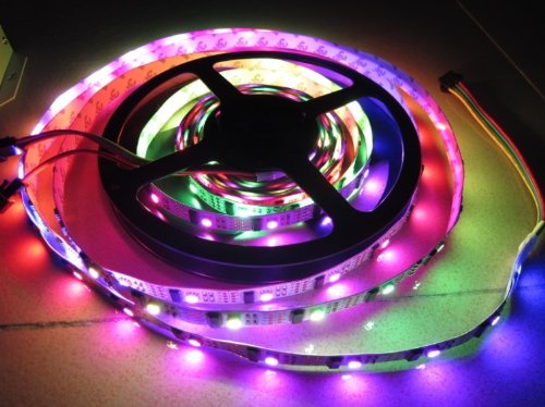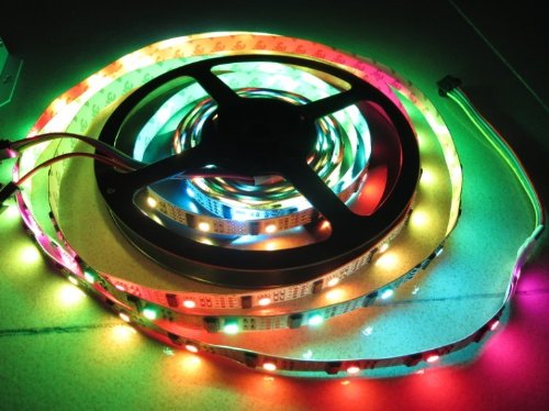 • 32 SMD5050 RGB LEDs per meter, with 32 WS2801 ICs (each LED is individually addressable)