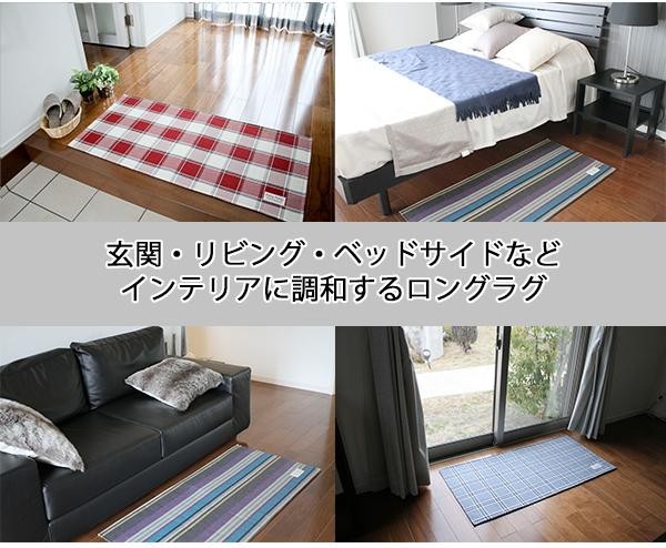 ソファーやラグに使われるインテリアの生地を使用したラグマット。シンプルで飽きのこないデザインなのでお部屋の家具にマッチします。表面には撥水加工を施しており、お手入れが簡単!洗濯ネットを入れて洗濯機で丸洗いでき、掃除機でも簡単にゴミが取れます。また、裏面にはすべりにくい加工を施しており、床暖房でも使用できます!! |