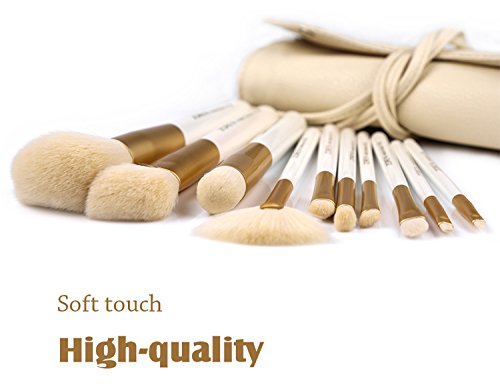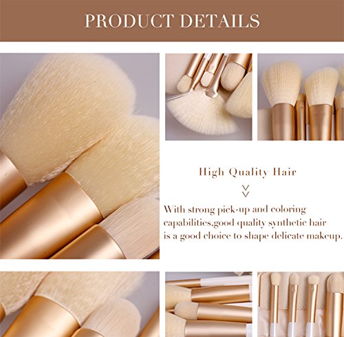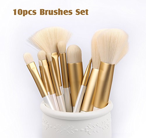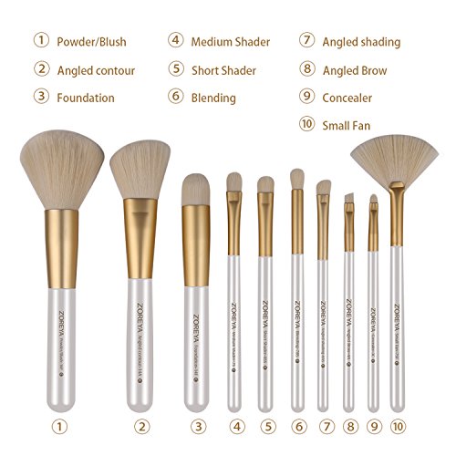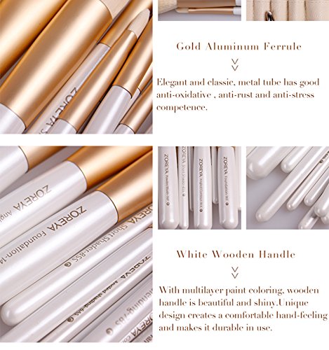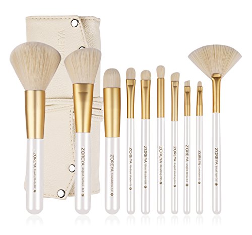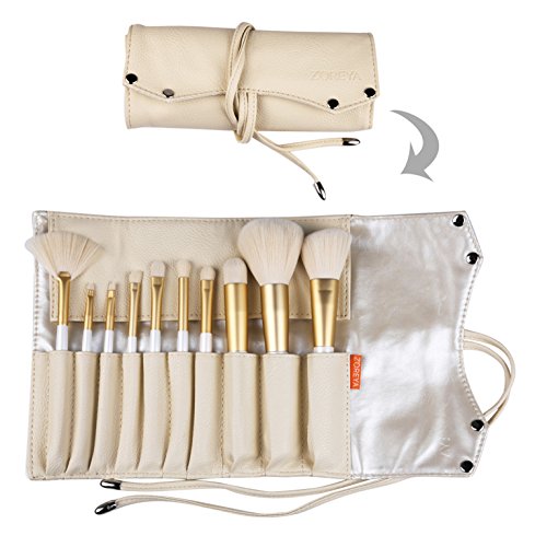 ZOREYA(TM) Makeup Brushes Professional Makeup Brush Set Premium Brush Holder Case With Contour Powder Foundation Angled Face Lip Brush (10 pc Gold)
