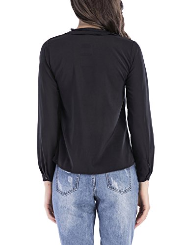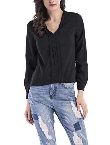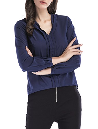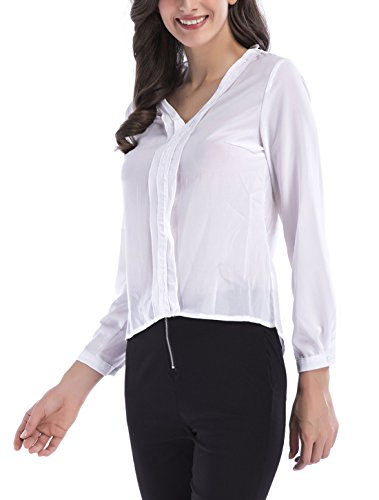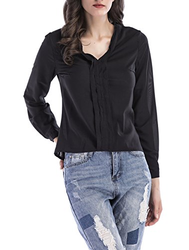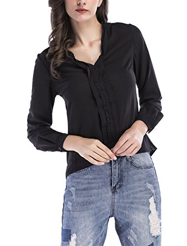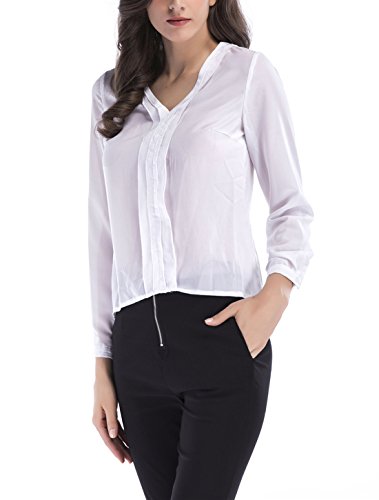 -. Title : Ellies レディース 通勤 ムジ ブラウス ギャザー Vネック 長袖 セクシー オシャレ シャツ