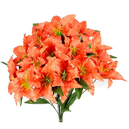 Artificial Full Blooming Tiger Lily with Greenery - 14 Stems for Home, Wedding, Restaurant and Office Decoration Arrangement, Salmon