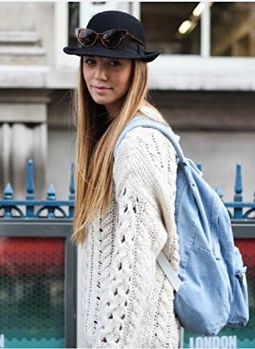 -. Feature : Dimension: Approx 43*34*14 cm = 16.9*13.3*5.5 inch / Material: Denim / Padded shoulder straps / Zip Closure / Perfect for holding your credit cards, Kindle, books, iPad, phone, keys, money, umbrella or other stuffs.
