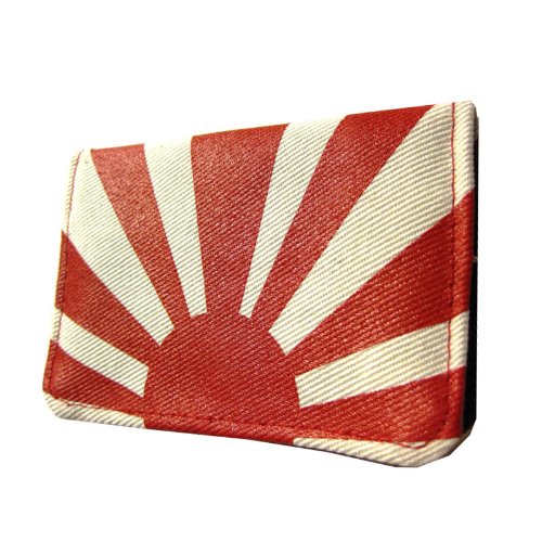 This bifold wallet is slim and lightweight! It is made of off-white canvas material with an original red, rising sun design silkscreened by hand onto it! The interior of the wallet is caramel brown vinyl and stays shut with velcro. The two pockets on the interior are great to hold cards, money, or business cards! This wallet measures 4.5 inches x 3 inches when closed. *due the hand-silkscreen process, the positioning of the image on the wallet may differ slightly from those pictured. + Slim! + Fashionable! + Vegan Friendly!