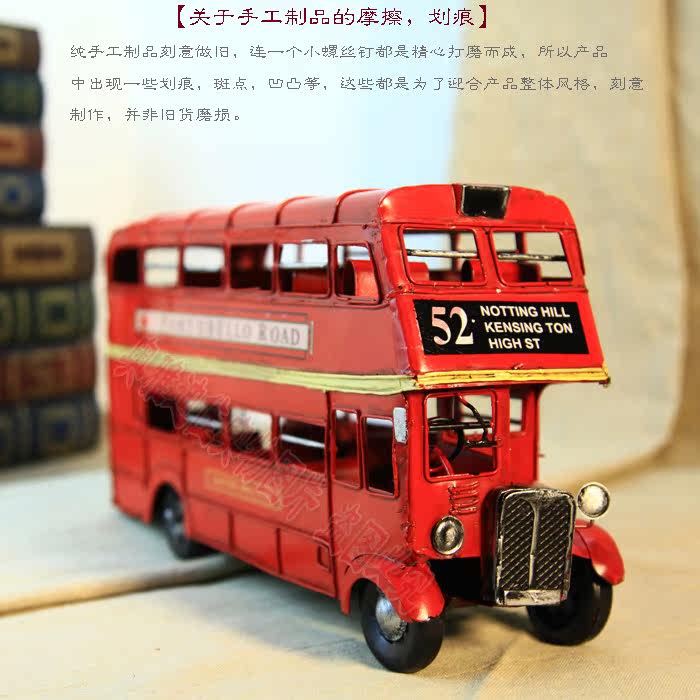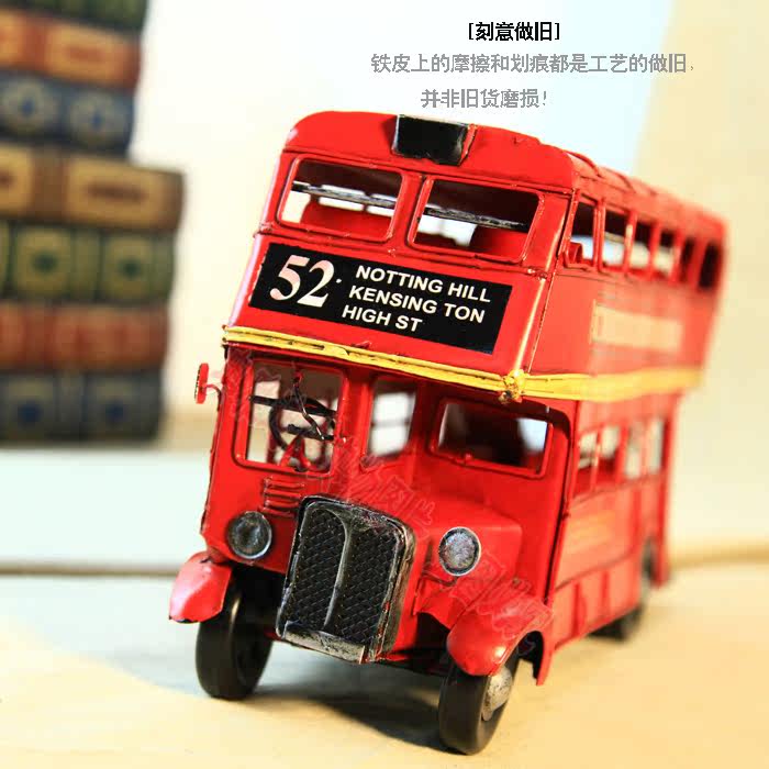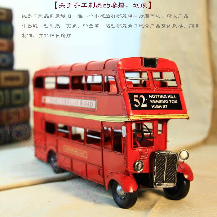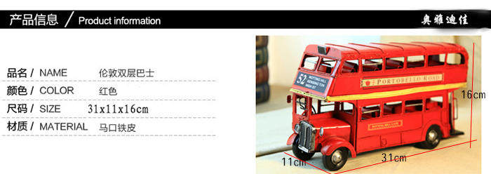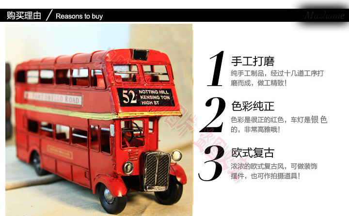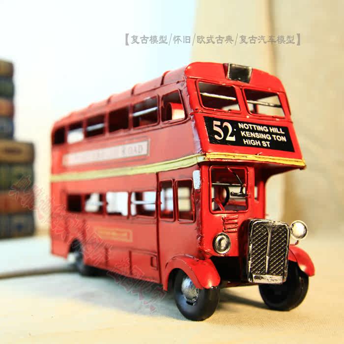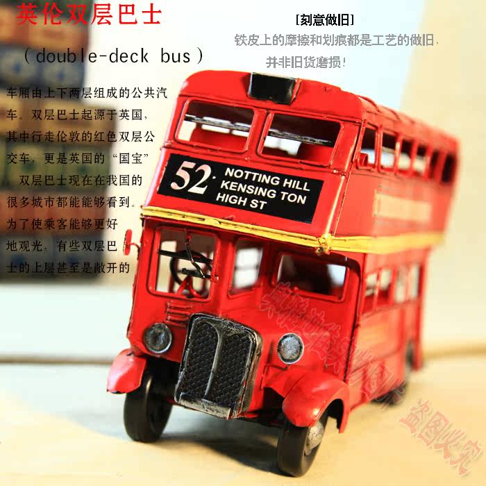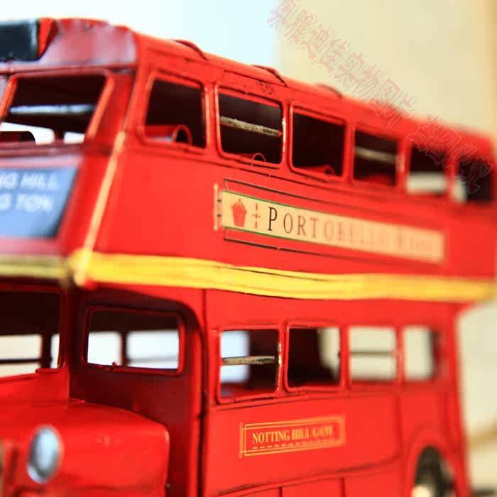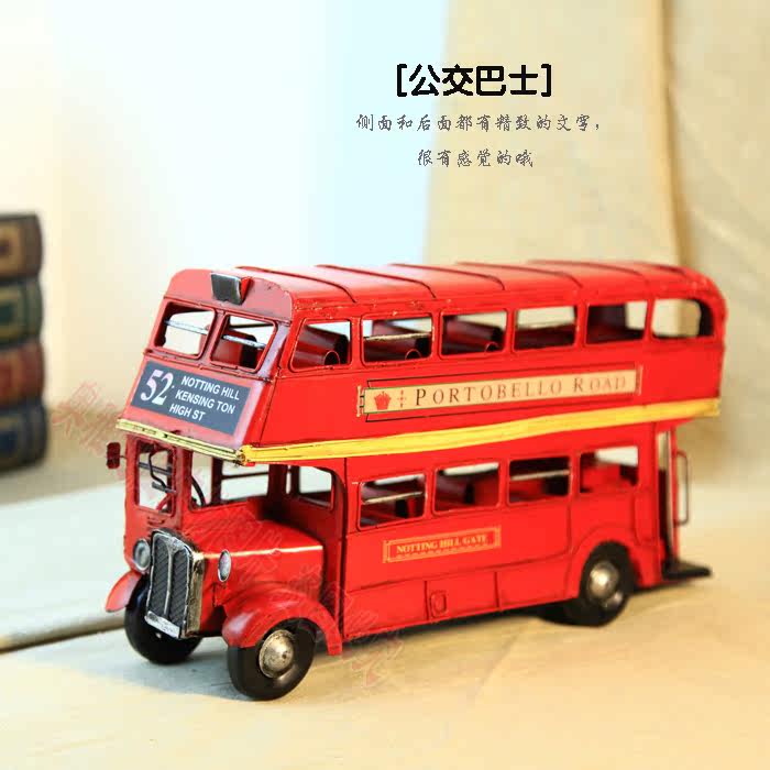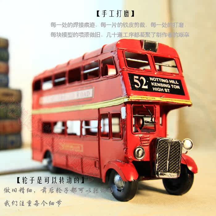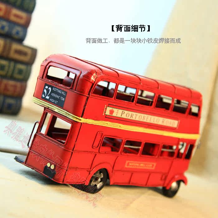 1905年双层巴士模型 复古车模 伦敦纯手工铁皮公交车模 家居摆件