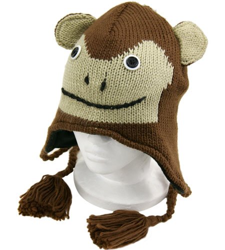 -. Title : Kids Monkey Trooper Winter Hat - One Size Fits Most - Knit Winter Cap